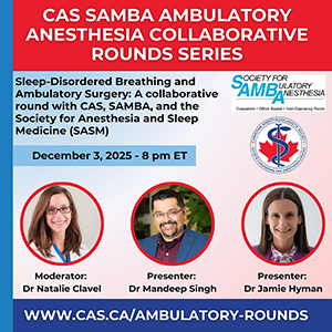 Join us for Sleep-Disordered Breathing and Ambulatory Surgery, A collaborative round presented by CAS, SAMBA, and the Society for Anesthesia and Sleep Medicine (SASM).